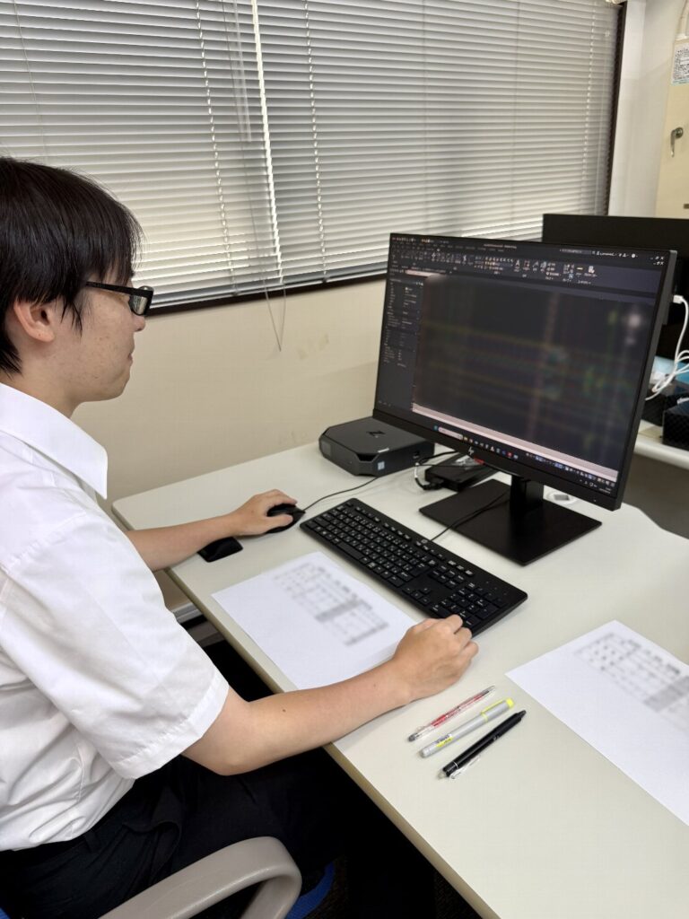 努力が形となって成果に現れる瞬間は、達成感とともに大きなやりがいを感じさせてくれます。これからも正確さと丁寧さを大切にし、より良い図面を仕上げられるよう取り組みたいと思います。